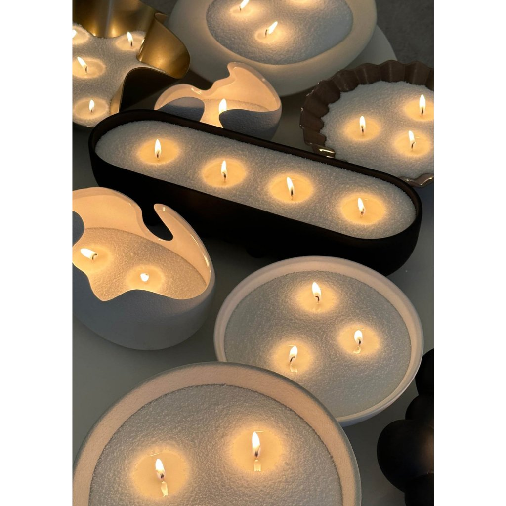 • Design Inovador e Moldável: A vela em formato de areia é um convite à criatividade! Preencha potes, castiçais, bandejas ou qualquer recipiente resistente ao calor, criando formatos e composições únicas que refletem seu estilo.